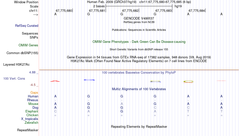 - ETS2[chr11:67775680-67775685]
