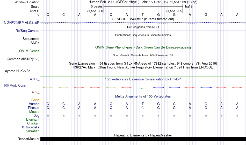 - YY1[chr11:71551957-71551969]