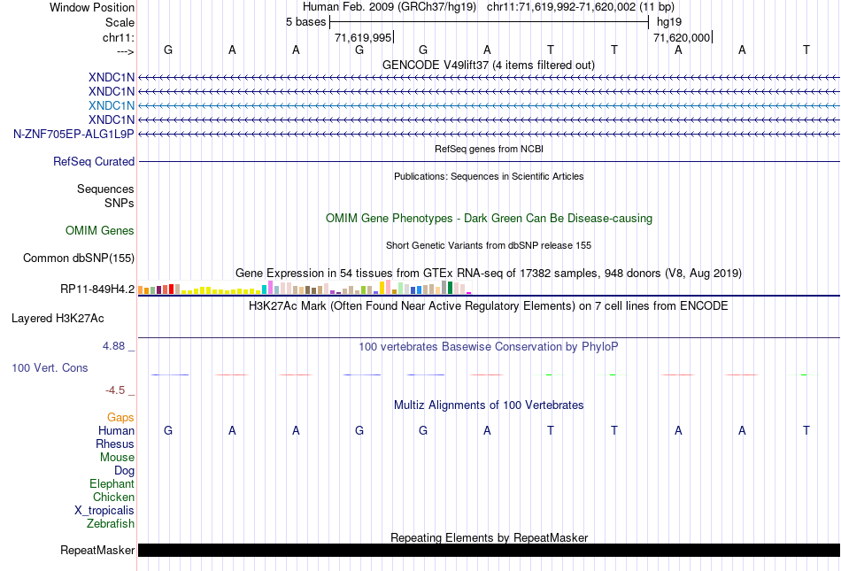 - GSC[chr11:71619992-71620002]