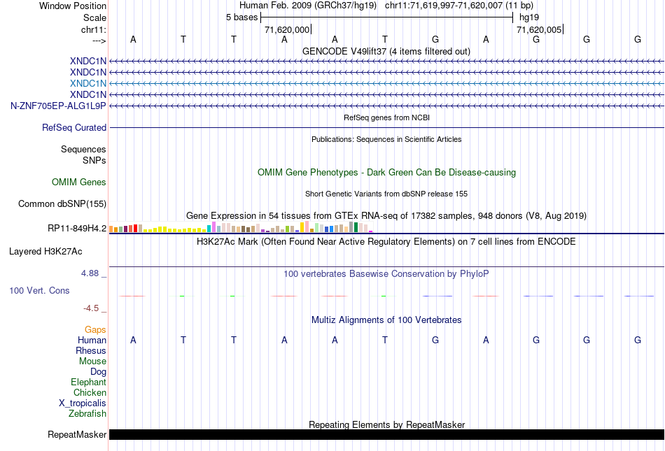 - POU6F2[chr11:71619997-71620007]