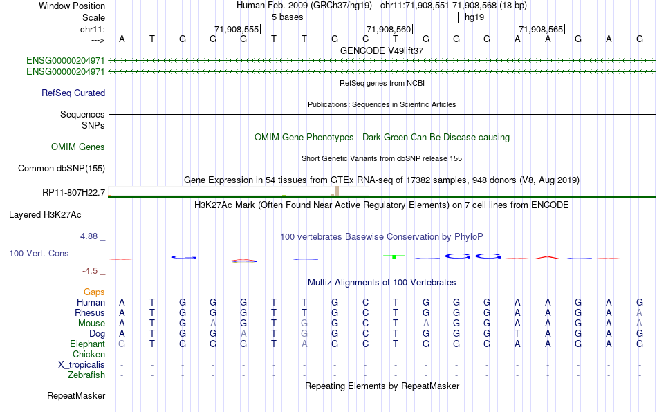 - BCL6B[chr11:71908551-71908568]
