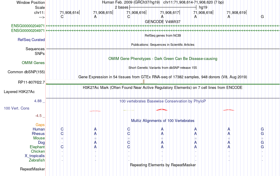 - SOX10[chr11:71908614-71908620]