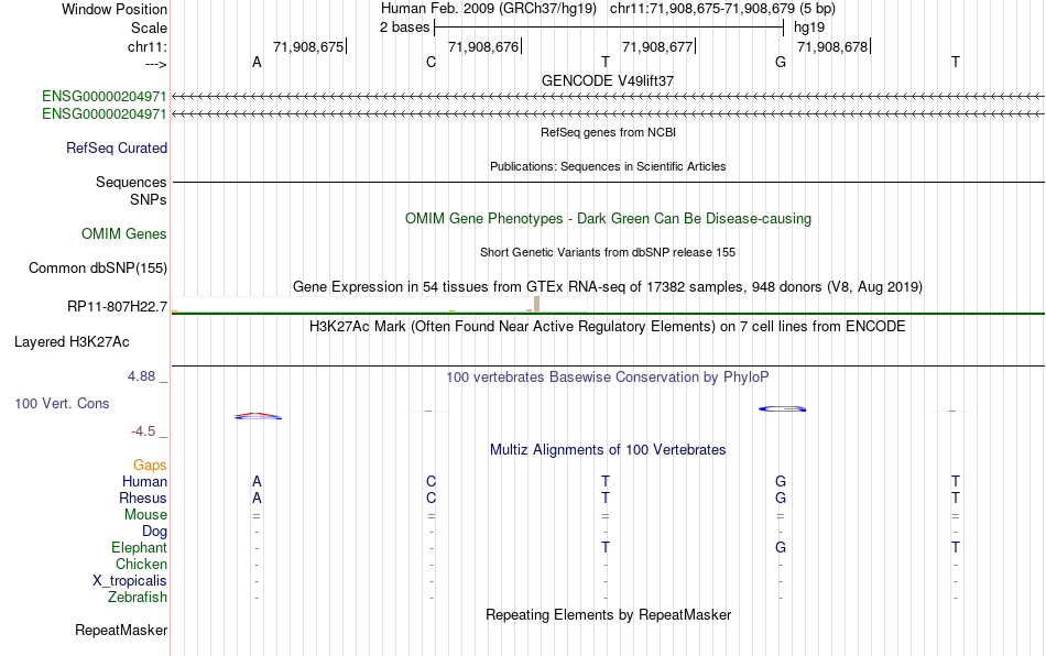 - NFE[chr11:71908675-71908679]