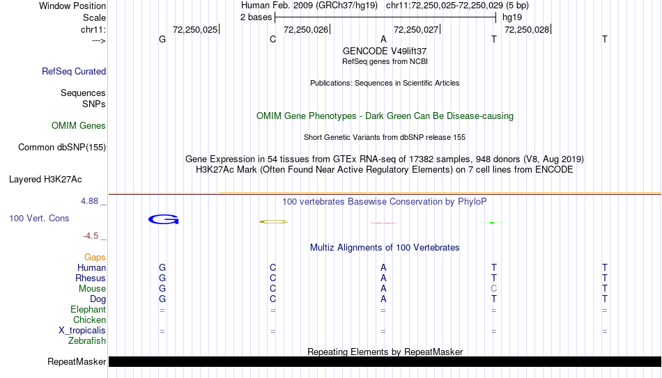 - YY1[chr11:72250025-72250029]