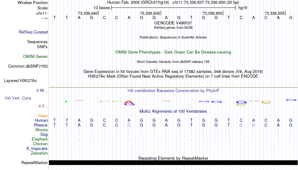 - CTCF[chr11:73336637-73336656]