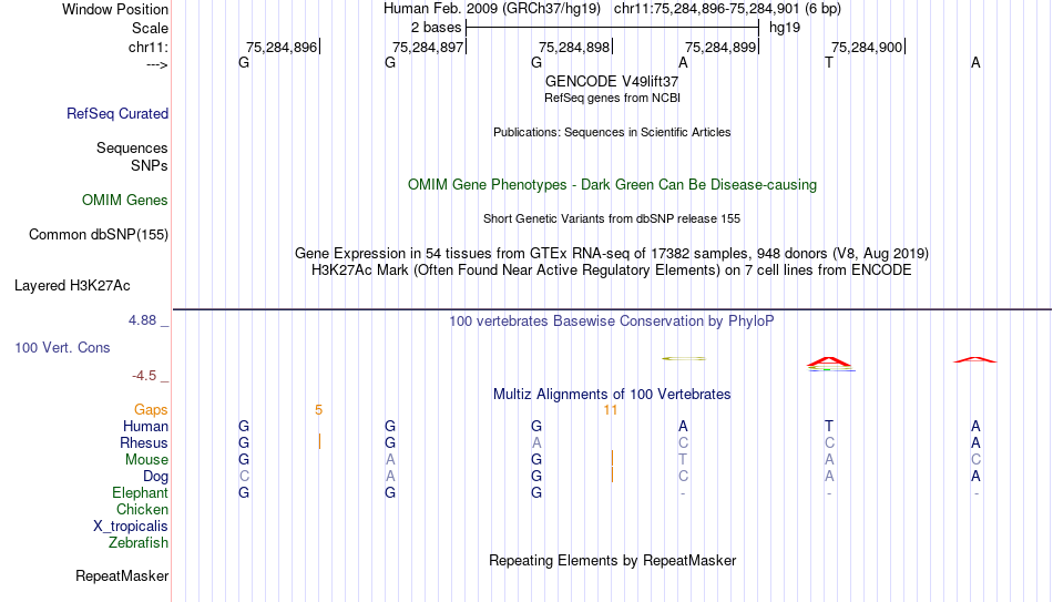 - GATA2[chr11:75284896-75284901]