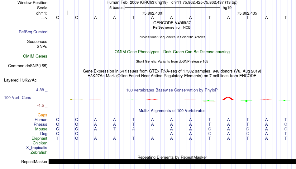 - FOXI1[chr11:75862425-75862437]