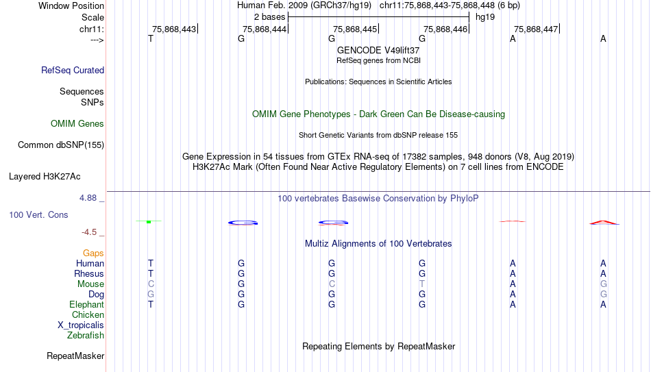 - ETS2[chr11:75868443-75868448]