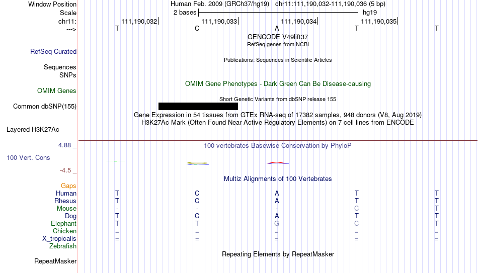 - YY1[chr11:111190032-111190036]