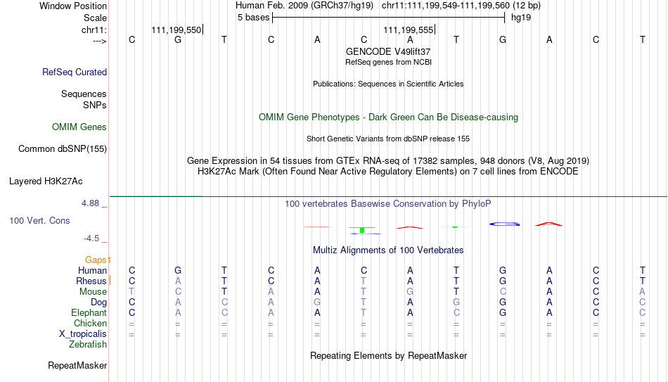 - USF1[chr11:111199549-111199560]