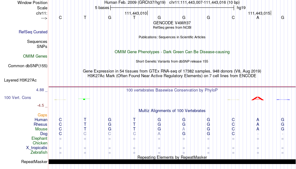 - THAP1[chr11:111443007-111443016]