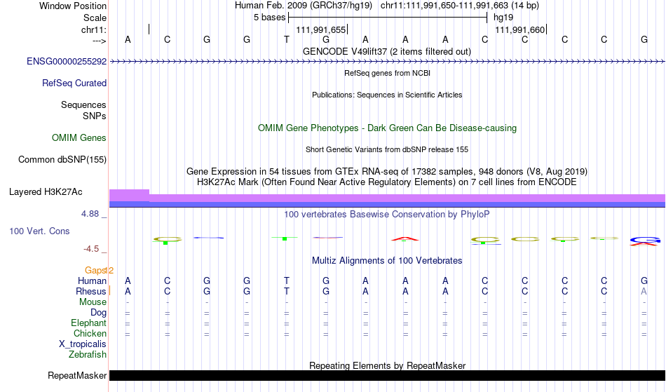 - NFKB1[chr11:111991650-111991663]
