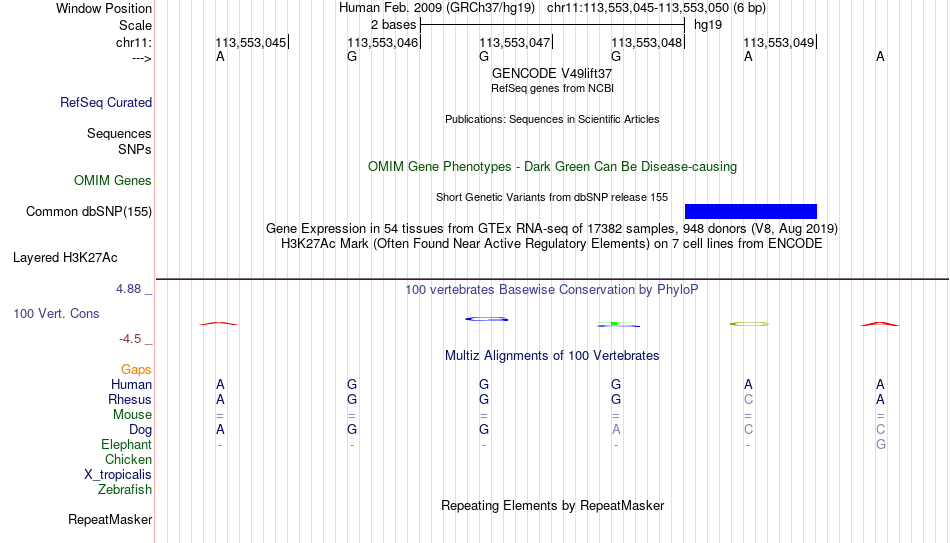 - ETS2[chr11:113553045-113553050]