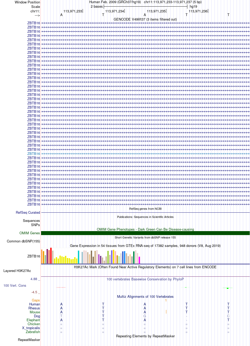 - YY1[chr11:113971233-113971237]