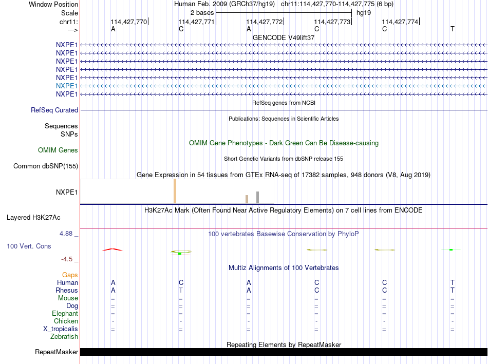- USF2[chr11:114427770-114427775]