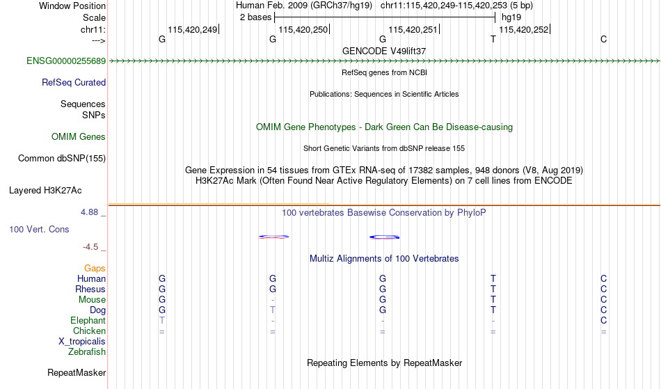 - ESR1[chr11:115420249-115420253]
