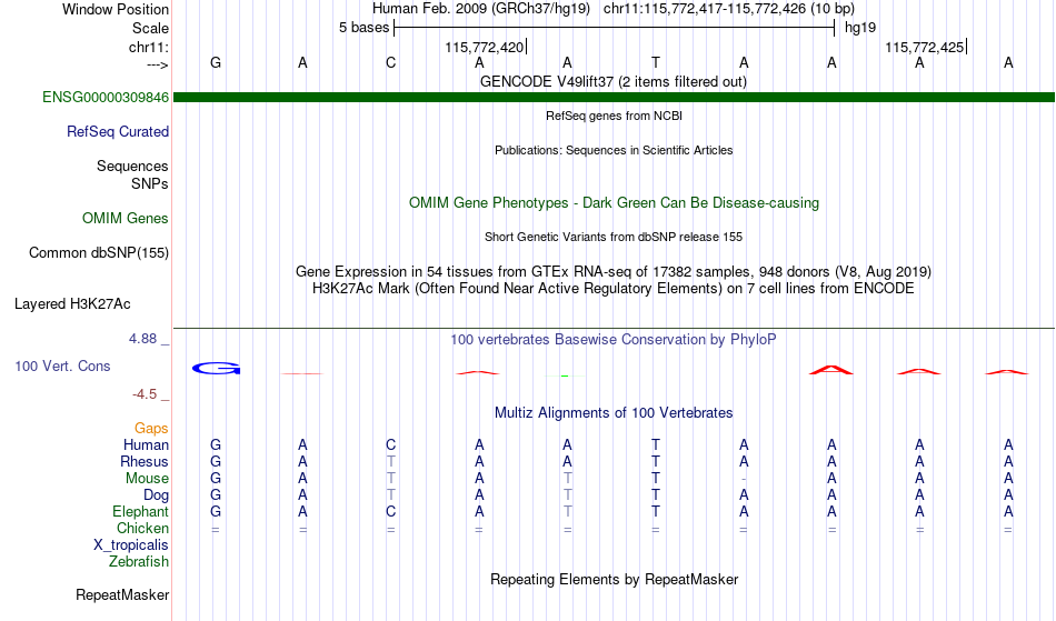 - CDX1[chr11:115772417-115772426]