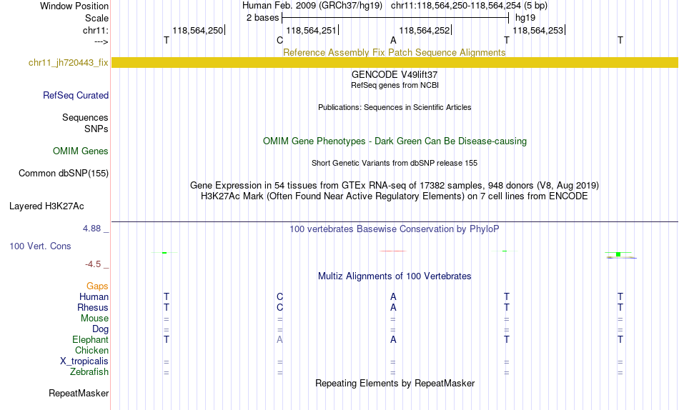 - YY1[chr11:118564250-118564254]