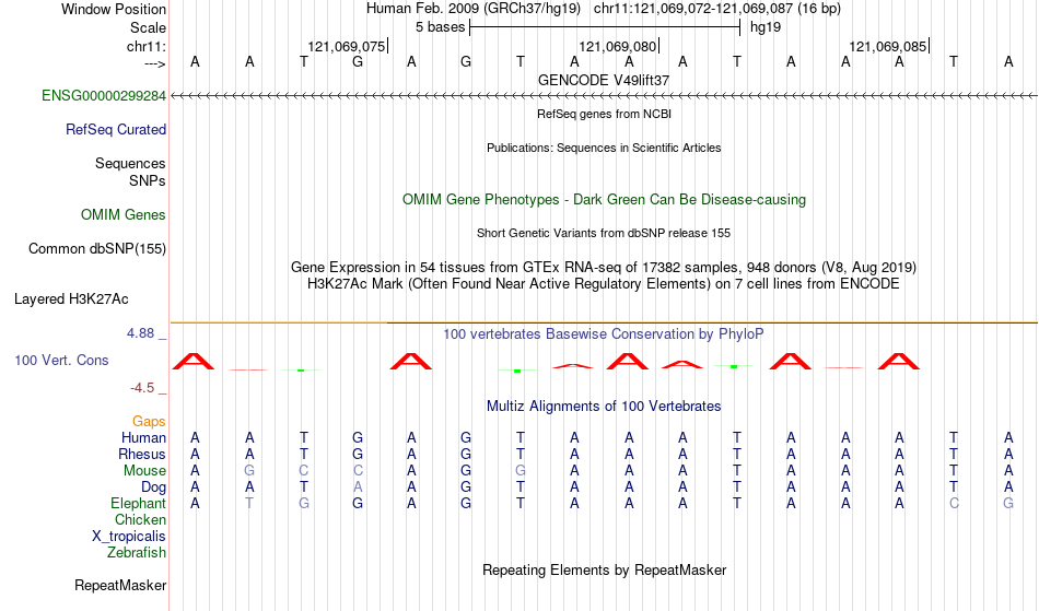 - FOXA1[chr11:121069072-121069087]