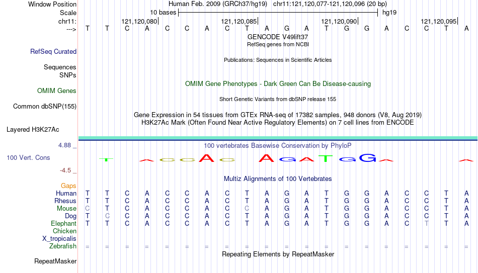 - CTCF[chr11:121120077-121120096]