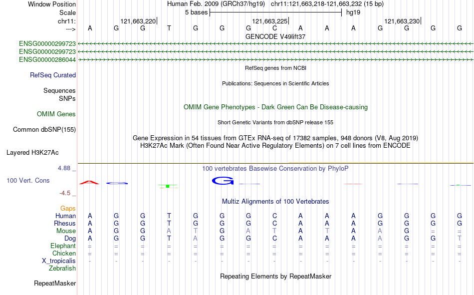 - PLAG1[chr11:121663218-121663232]