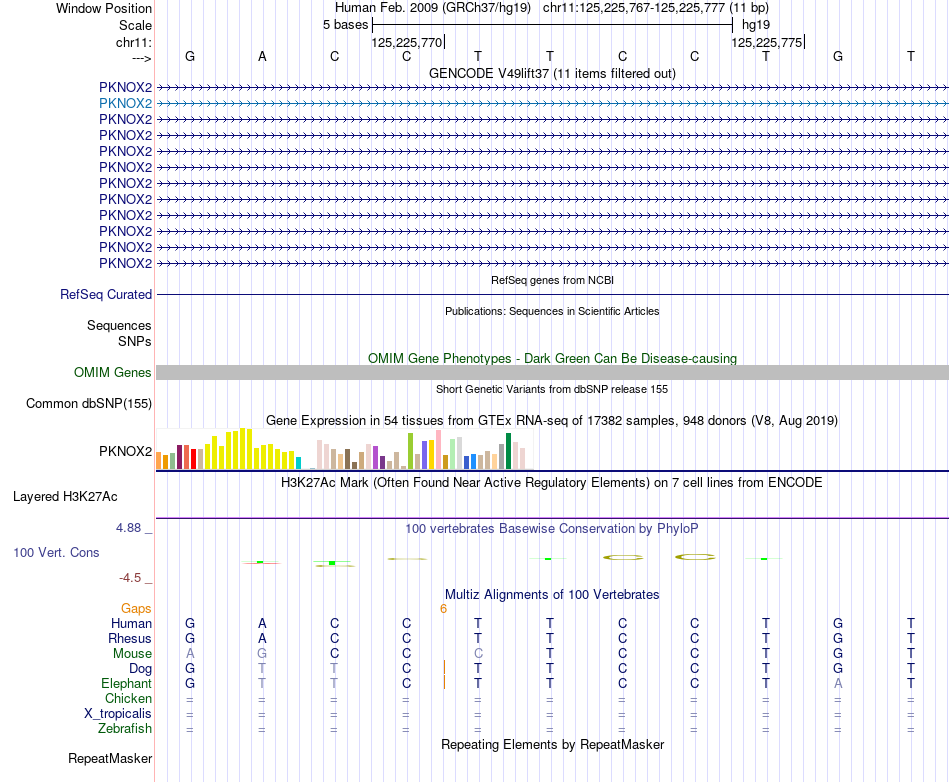 - GABPA[chr11:125225767-125225777]