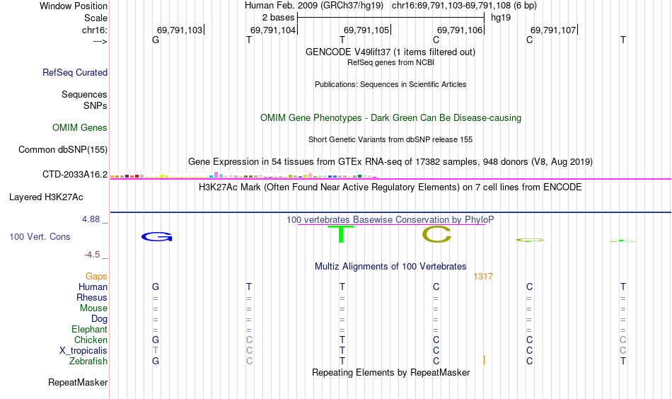 - ETS2[chr16:69791103-69791108]