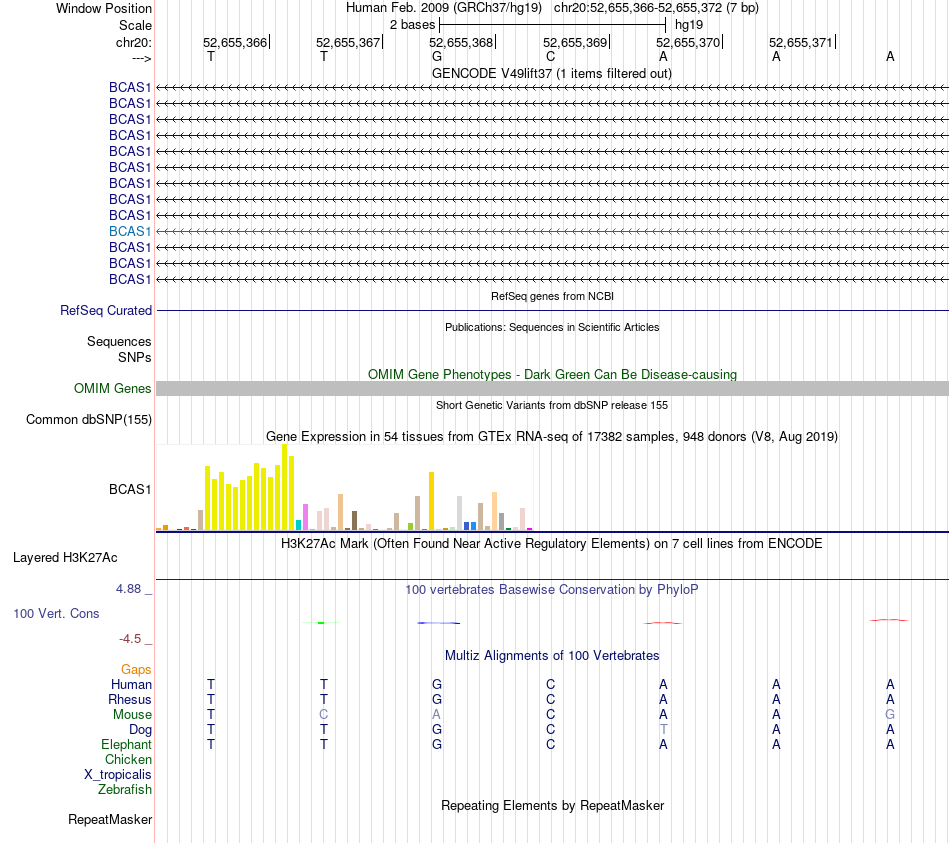 - TCF4[chr20:52655366-52655372]