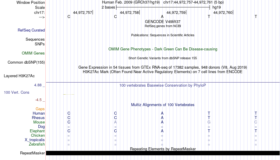 - YY1[chr17:44972757-44972761]
