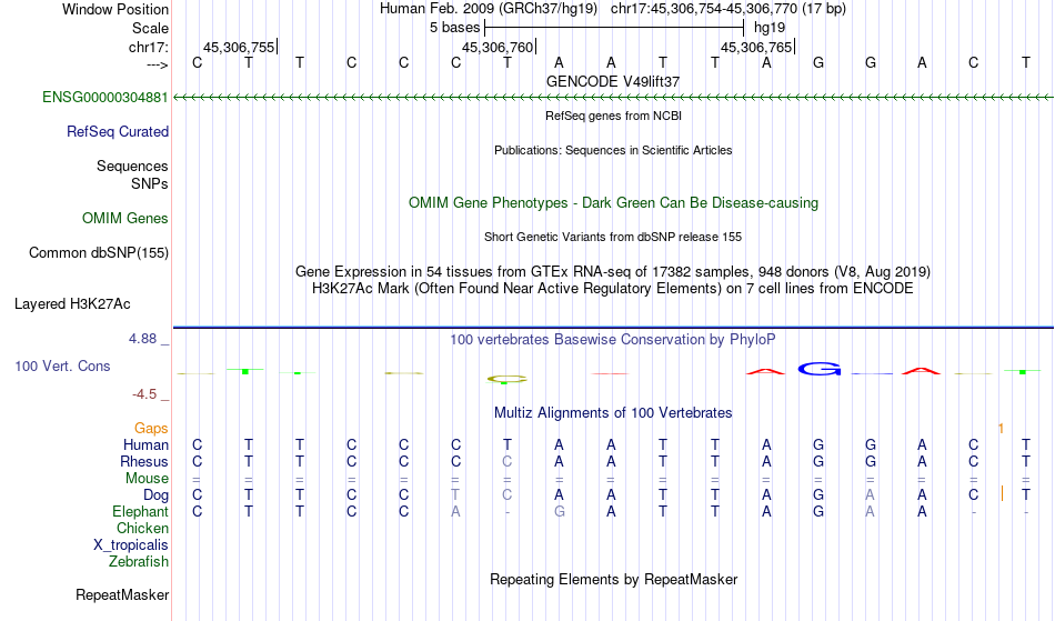 - SRF[chr17:45306754-45306770]