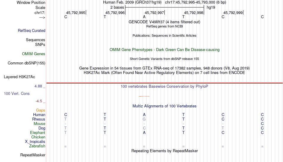 - GATA2[chr17:45792995-45793000]