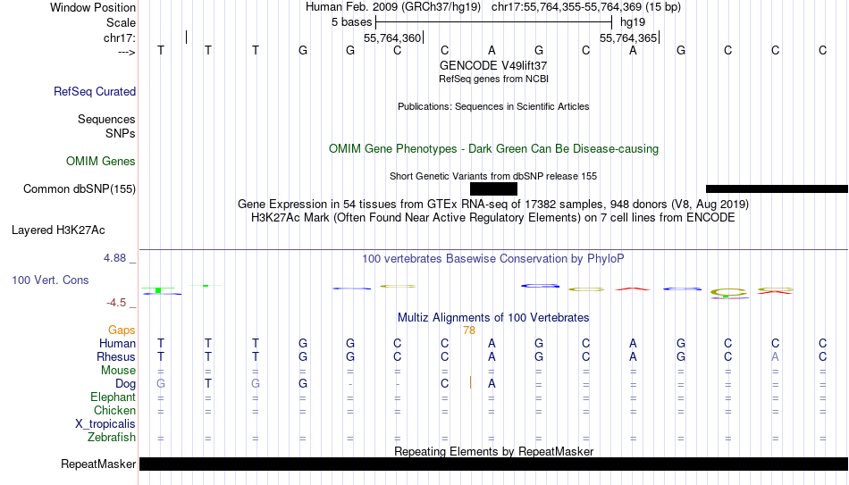 - TLX1[chr17:55764355-55764369]