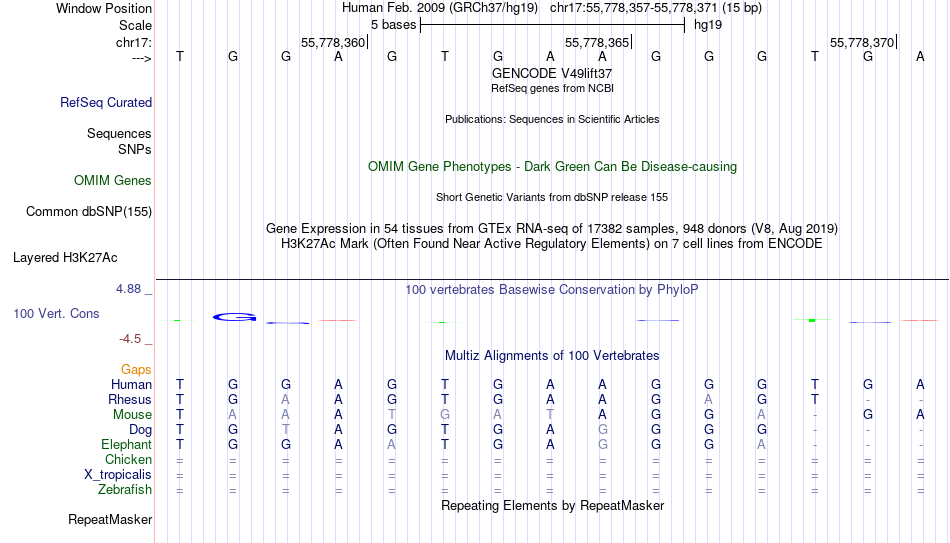 - RXRG[chr17:55778357-55778371]