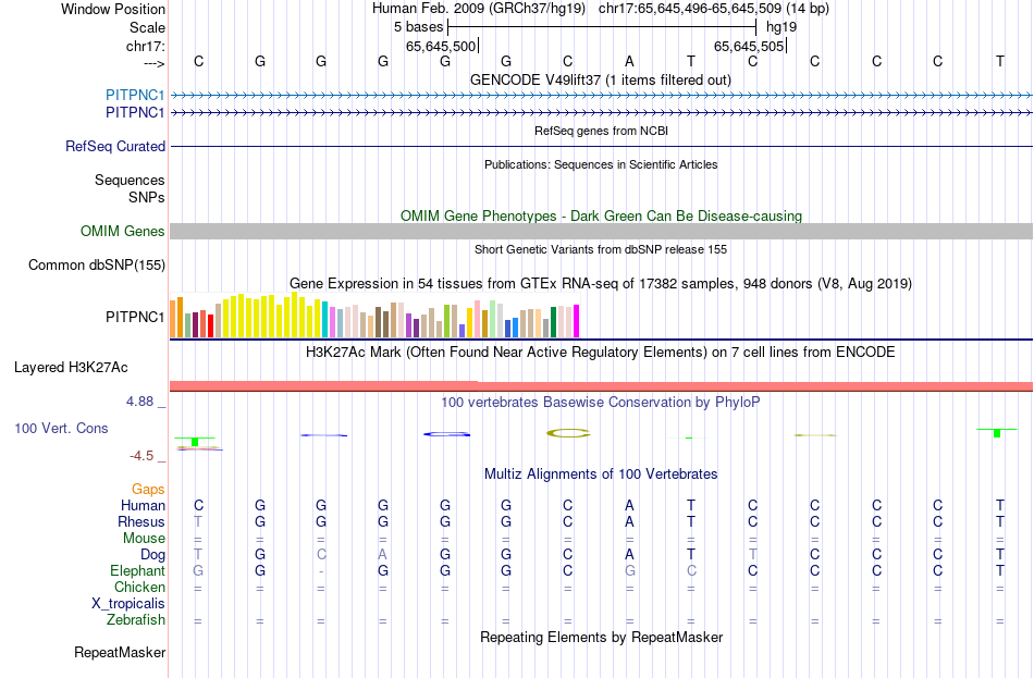 - NFKB1[chr17:65645496-65645509]