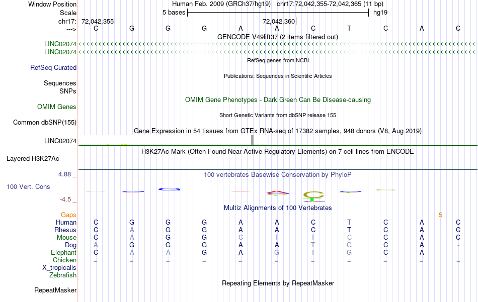 - RELA[chr17:72042355-72042365]