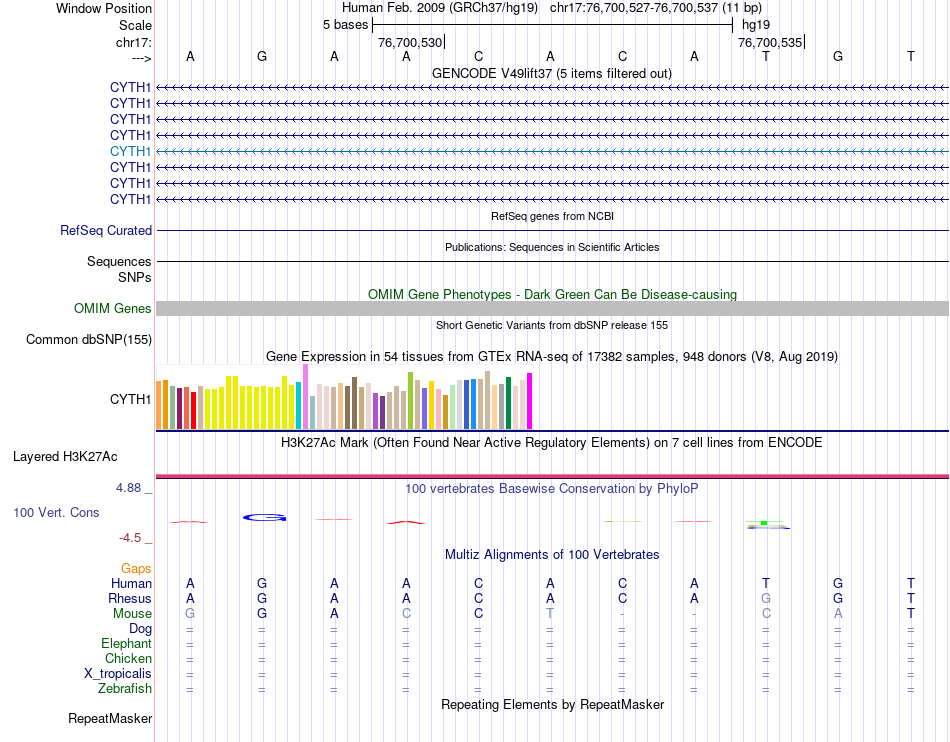- MAX[chr17:76700527-76700537]