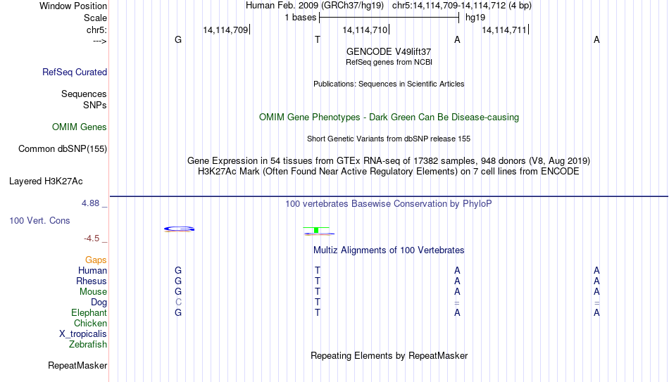 - MYB[chr5:14114709-14114712]