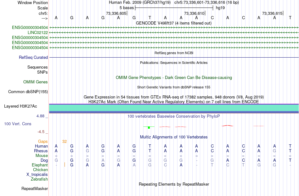 - FOXA1[chr5:73336601-73336616]
