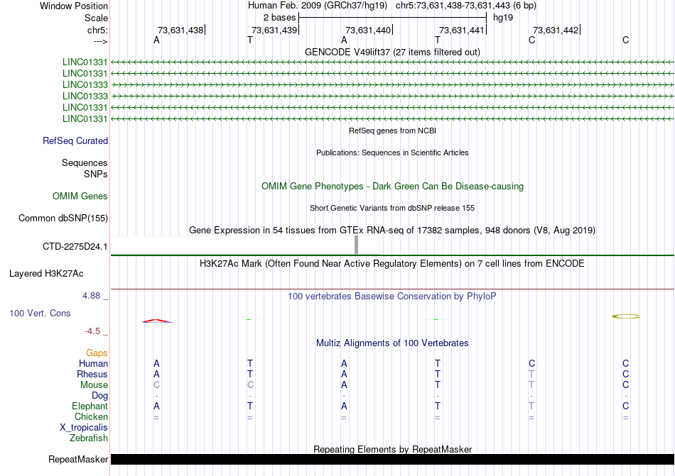 - GATA2[chr5:73631438-73631443]