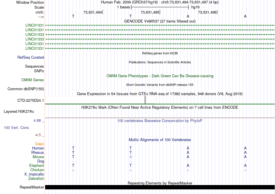 - MYB[chr5:73631494-73631497]