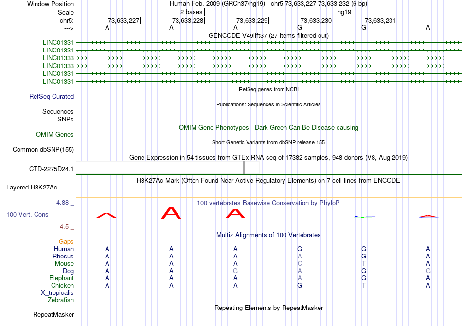- ETS2[chr5:73633227-73633232]