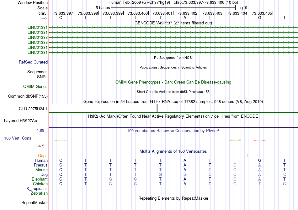 - CDX1[chr5:73633397-73633406]