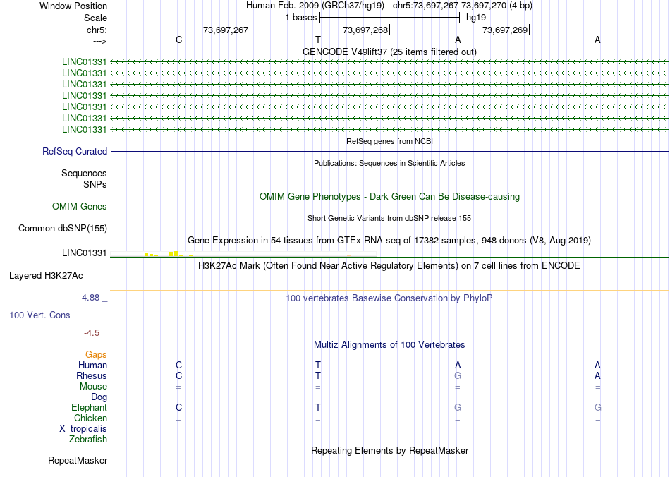 - MYB[chr5:73697267-73697270]