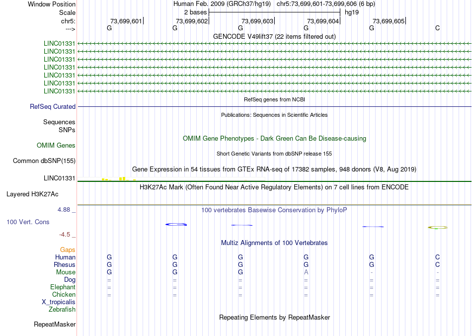 - SP1[chr5:73699601-73699606]