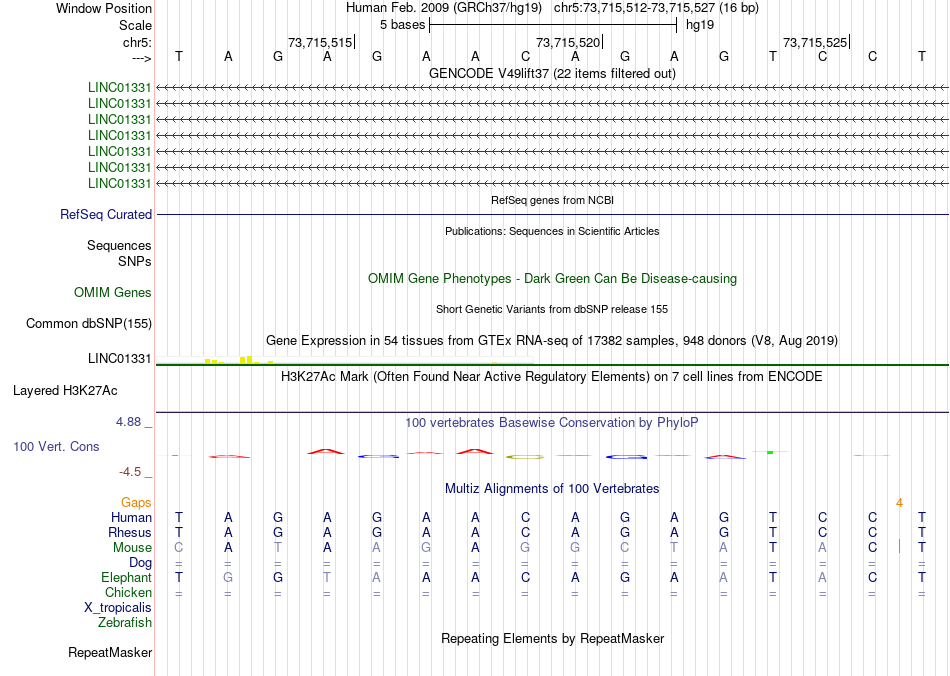 - HNF4G[chr5:73715512-73715527]