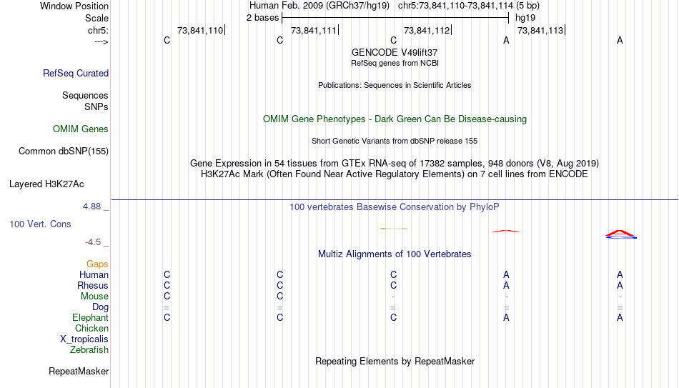 - NFE[chr5:73841110-73841114]