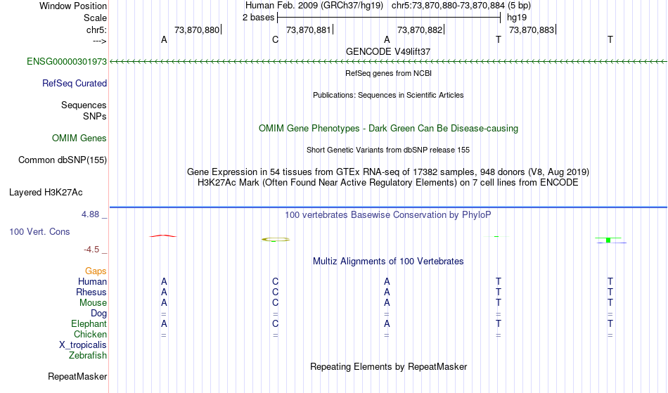 - YY1[chr5:73870880-73870884]