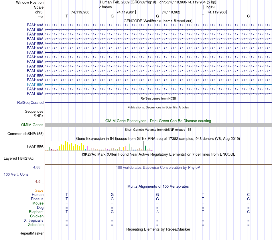- ESR1[chr5:74119960-74119964]