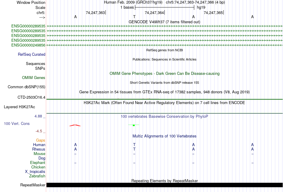 - MYB[chr5:74247363-74247366]