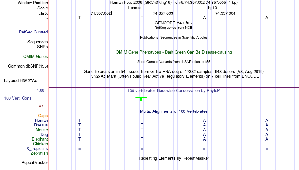 - MYB[chr5:74357002-74357005]